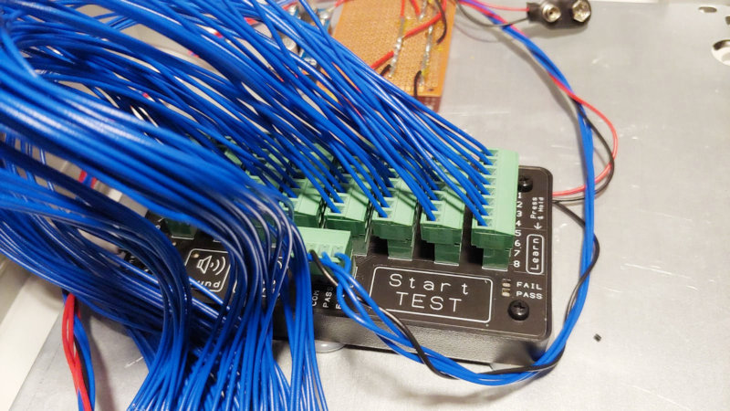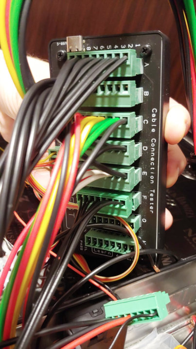 Massive structure cable wiring into the CCT-01 Cable Tester for general-purpose cable testing for cable production testing.